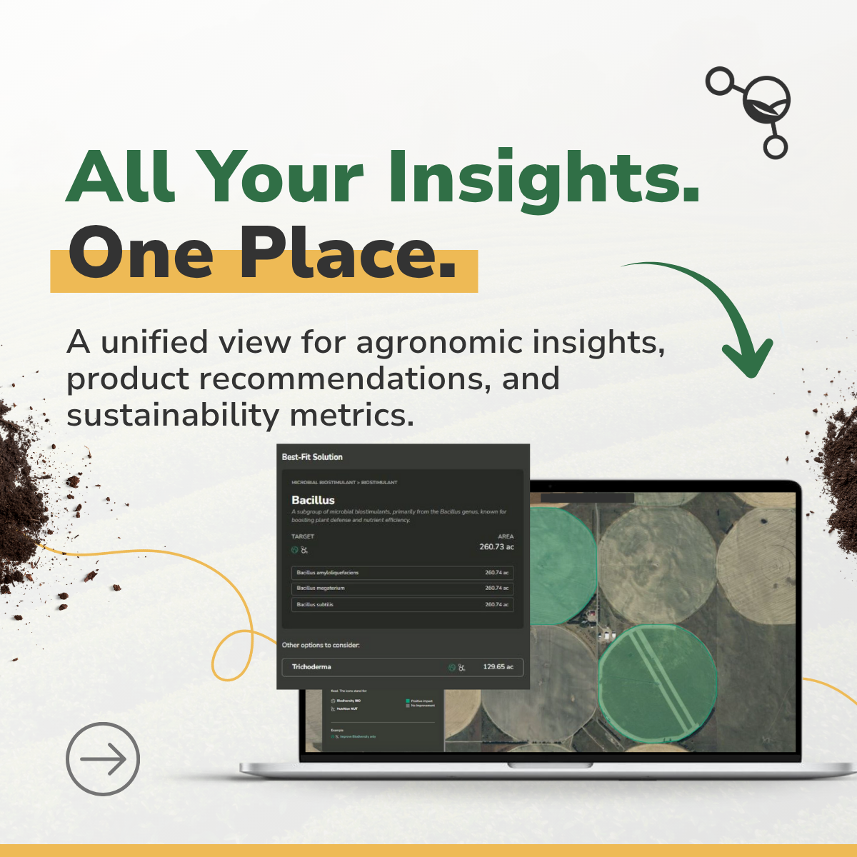 - Sustainability Metrics: Updated sustainability indexes are now available in the platform, offering deeper context for soil and field-level insights. These metrics are now accessible through the Best-fit Solutions panel and across map, tabular, and PDF views.